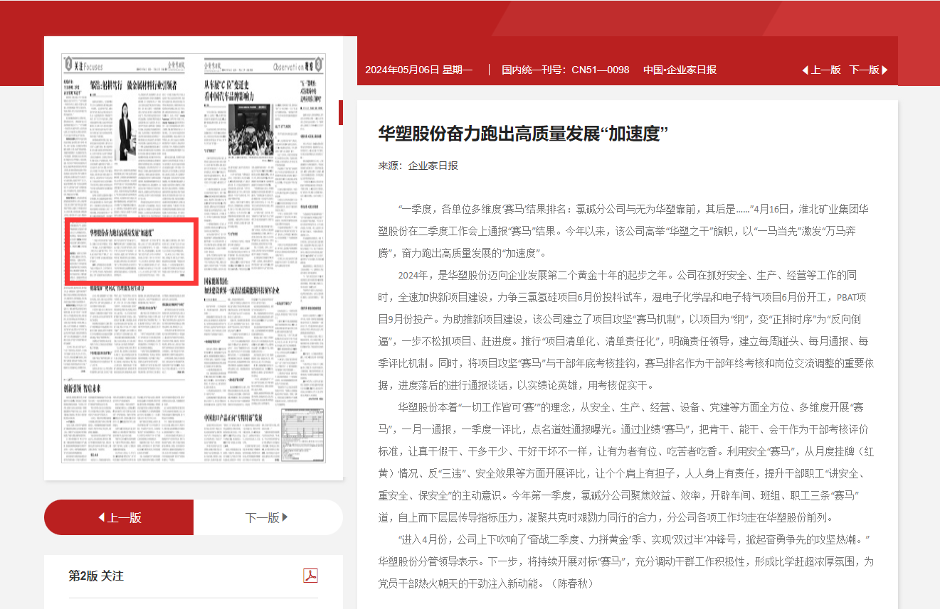 《企业家日报》5月6日二版:yd2333云顶电子游戏股份奋力跑出高质量发展“加速度”