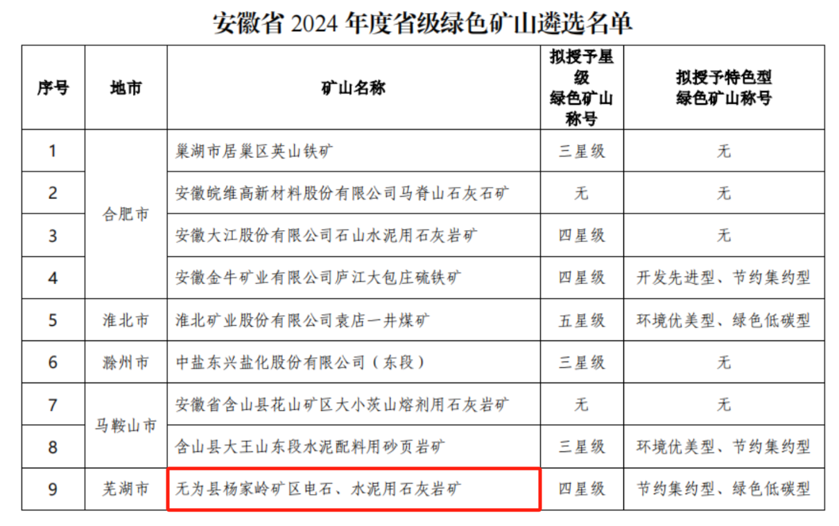 【喜讯】yd2333云顶电子游戏股份无为yd2333云顶电子游戏矿业获评“省级绿色矿山”