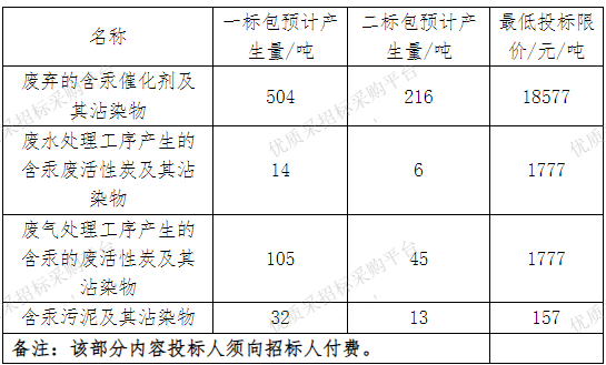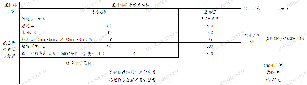 2.6 标包划分:两个标包。各标包内容包含对应低汞触媒年度供应及含汞废物处置。